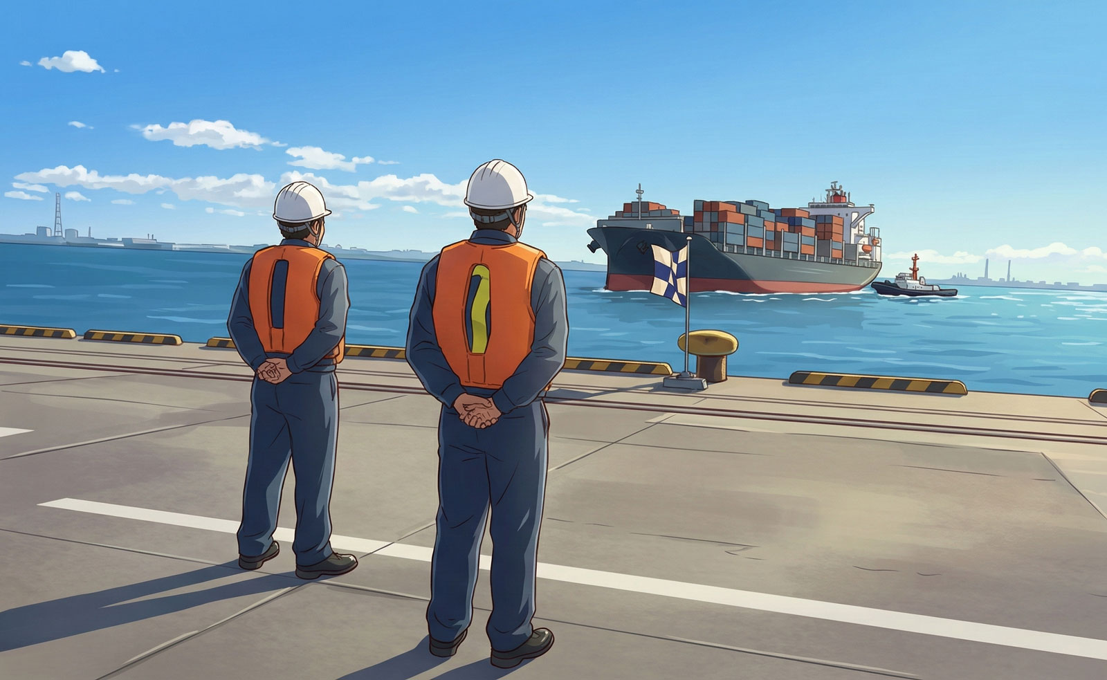 荷役のため接岸するコンテナ船が正確な位置に停止するよう、陸岸から誘導します。巨大な船体が目前に迫ってくる迫力は、他のどんな職場でも体験できません!