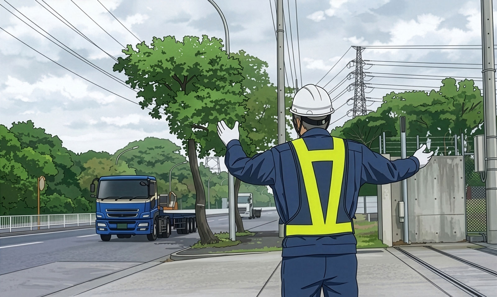 ターミナルに入場するトレーラーの誘導と運転手の入門証確認を行います。